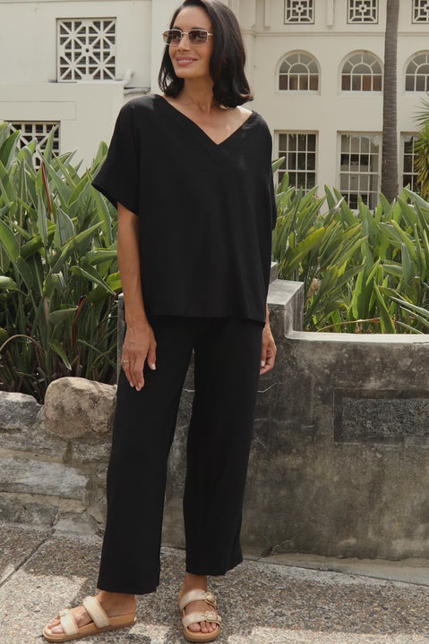 Gemma Short Sleeve V Neck Top Black